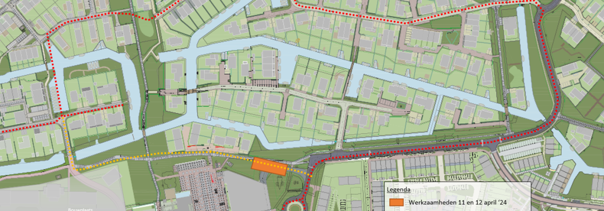 Op donderdag 11 april vanaf 7.00 tot vrijdag 12 april 2024 16.00 worden er werkzaamheden uitgevoerd aan de verharding op de asfaltwegen ten noorden en ten zuiden van de Albert Heijn, zie oranje gearceerde locaties in de onderstaande afbeelding. Hierdoor is de route voor het autoverkeer van en naar de Zilvermos, Hopbellen en Heksenkruid tijdelijk afgesloten. U kunt in deze periode gebruik maken van de rode omleiding voor autoverkeer zoals weergeven in de onderstaande afbeelding. De werkzaamheden bestaan uit het verwijderen van de huidige verharding, het profileren van de puinbaan en het aanbrengen van een asfaltverharding. De asfaltverharding wordt vrijdag 12 april aangebracht.